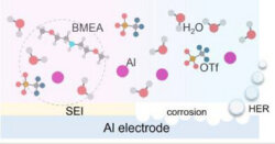 This study addresses key challenges in aqueous aluminum-ion batteries by introducing the chelating agent Bis(2-methoxyethyl)amine (BMEA) to restructure the solvation environment and suppress detrimental side reactions. By forming a stable solid-electrolyte interphase and expanding the electrochemical window, the BMEA-based electrolyte enables a high-capacity (218.0 mAh g⁻¹) Al||TCB battery with excellent cycling stability over 300 cycles.
