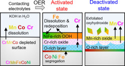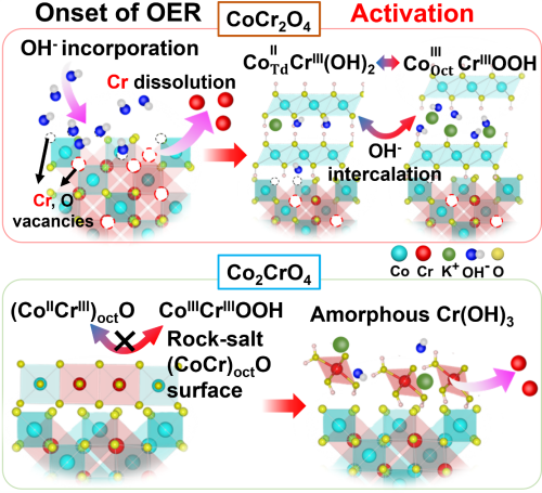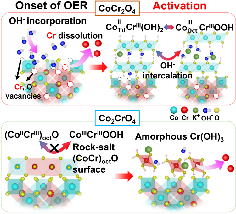 During the oxygen evolution reaction (OER), electrocatalysts undergo surface transformation. We found that Cr dissolution in Co-Cr spinel oxide triggers reversible hydroxide-to-oxyhydroxide transformation that enhances OER activity and stability.